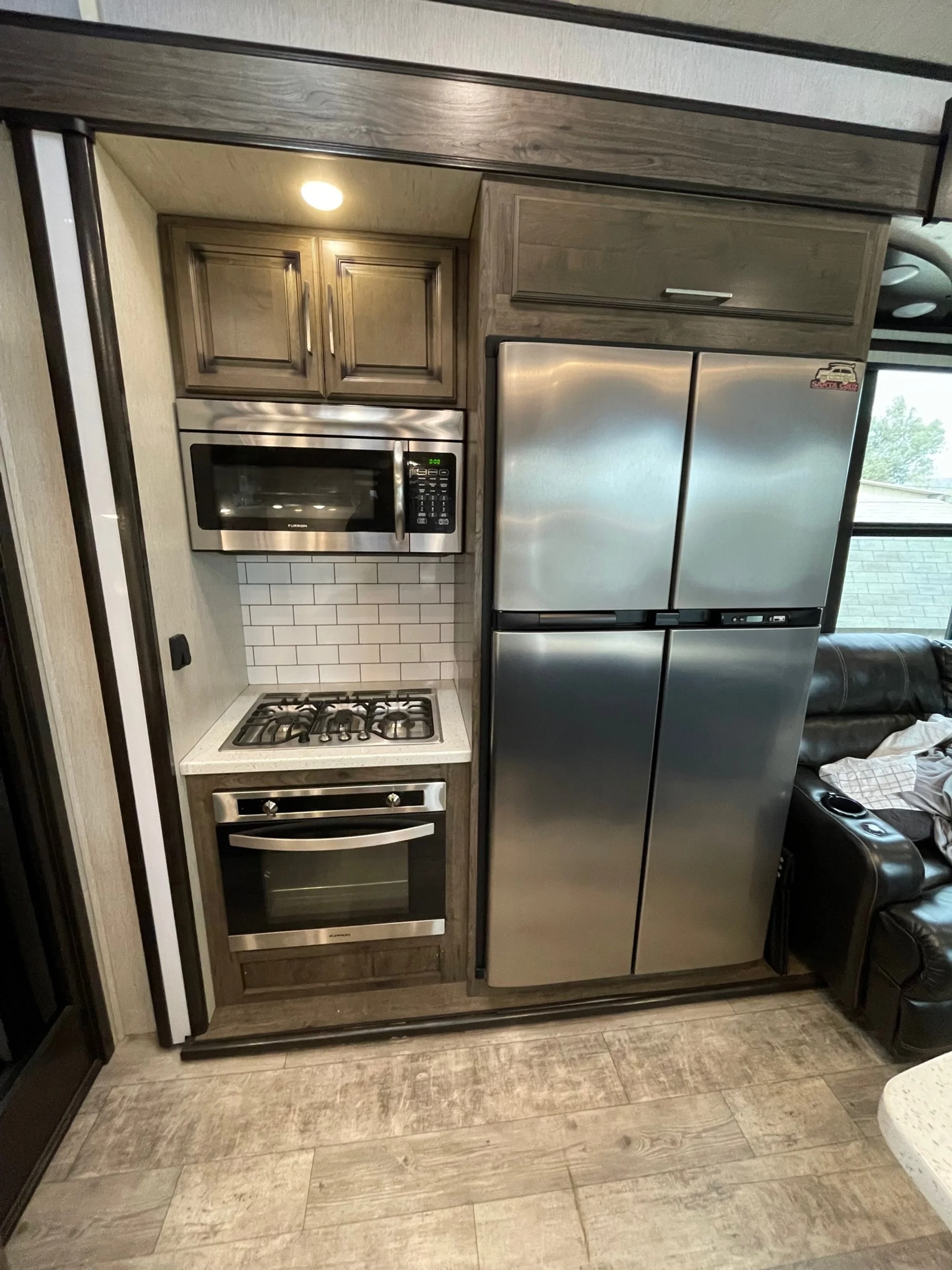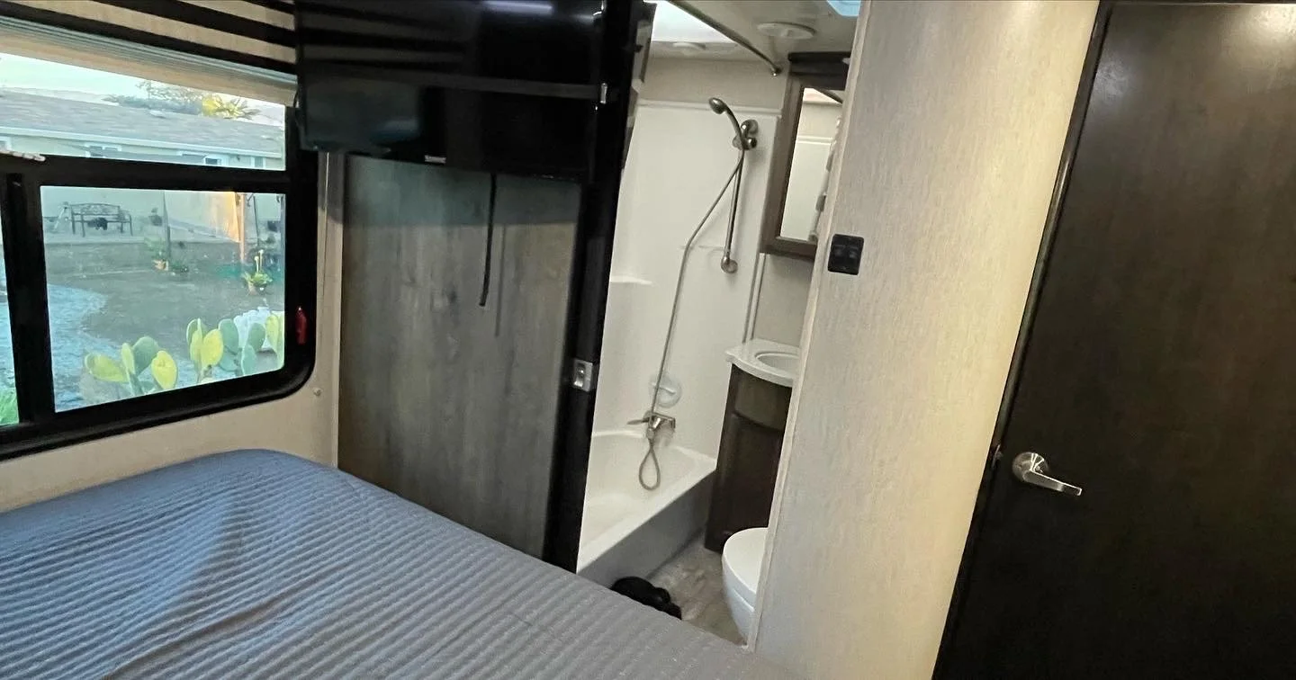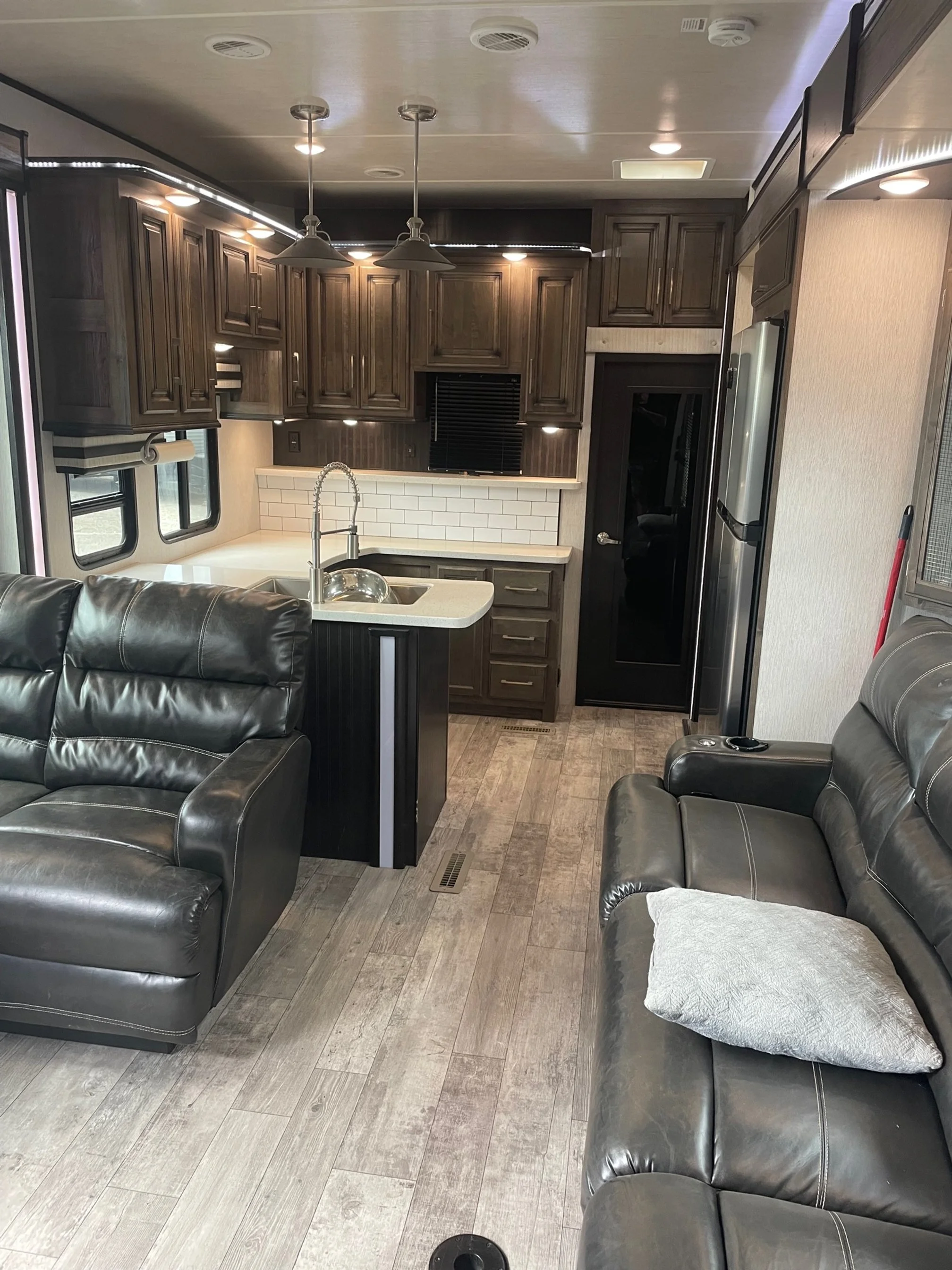 Sleeps up to 10 people. Has a king bed up front with two queens in the rear. Loft bed and Half bath in rear. Trailer is stocked with pots, pans, silverware, and cooking utensils, has three AC unit, and four TVs.
